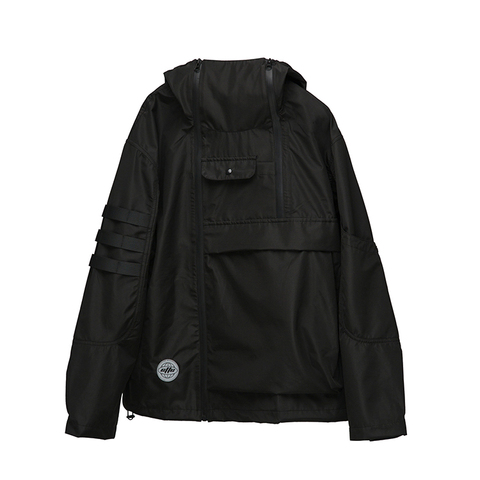 Vendita calda moda nero multi tasche giacca a vento antivento cappotto inverno primavera uomo giacca outdoor con cappuccio