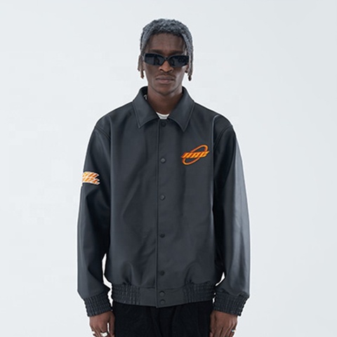Nuovo design alla moda personalizzato logo ricamato casual streetwear giacca di pelle per gli uomini