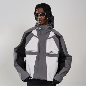 High Quality New Design Stereoscopic Pockets Women Windbreaker Contrast Color Splicing Full Zipper Bomber Hooded Men's Jacket